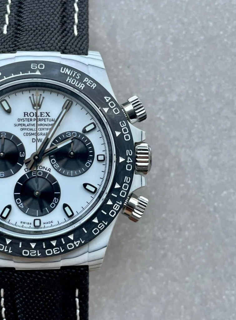 Iconic Styling: The Daytona DIW PANDA is an embodiment of sophistication, marrying white carbon casing with a contrasting black dial for a uniquely elegant aesthetic. Its super clone status attests to its irresistible allure, making it a standout addition to any watch collection.