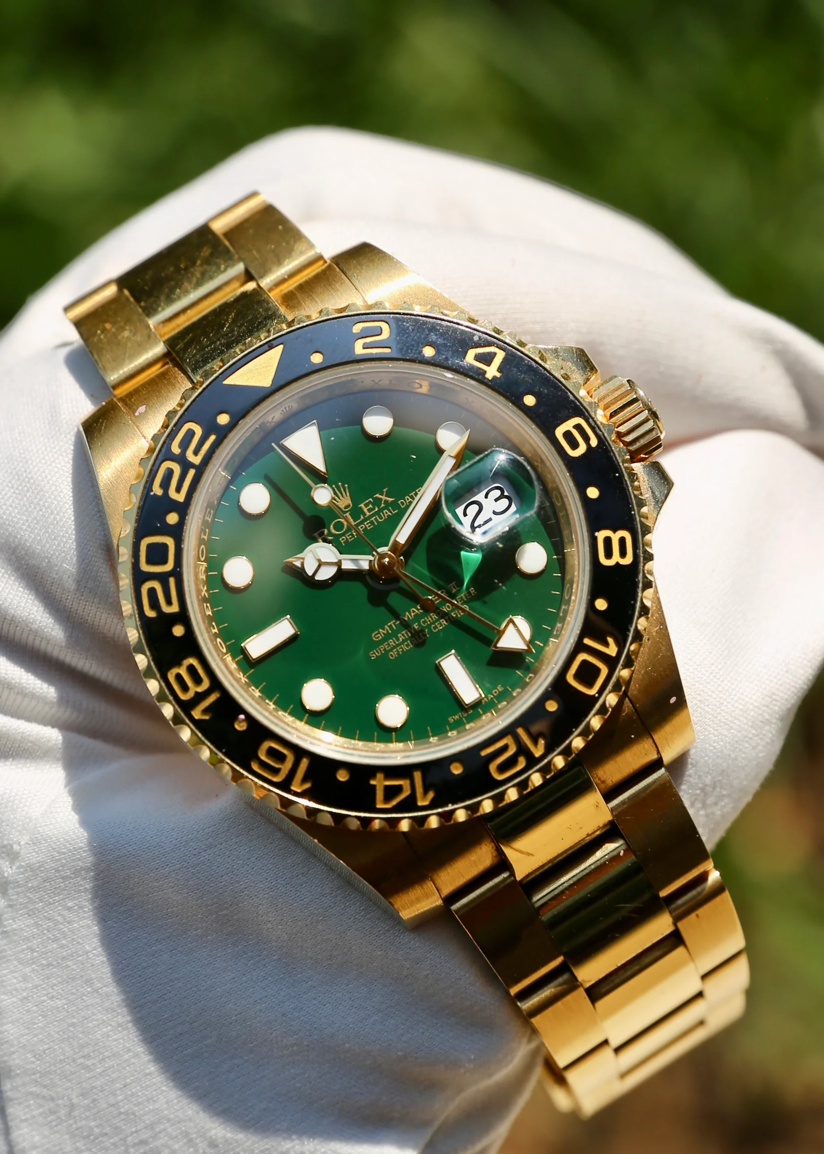 The GMT Master II 116718LN is perfect for travelers and watch enthusiasts alike, blending functionality with luxury. Its striking design and high-quality craftsmanship make it a coveted piece in the world of horology.