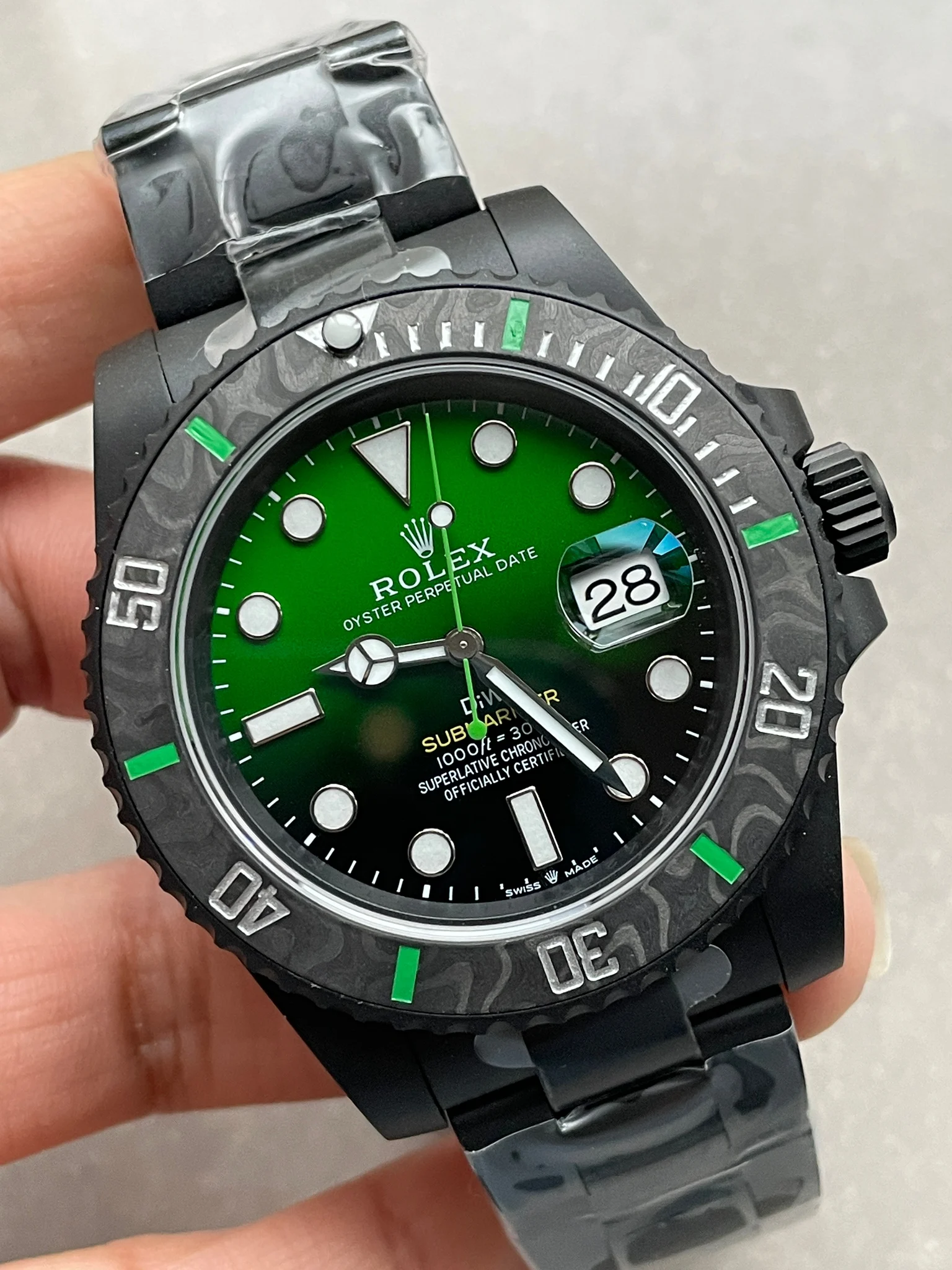 Rolex Submariner DIW “Parakeet” DLC VSF 1:1 Best Edition Black/Green Dial on DLC Bracelet VS3135