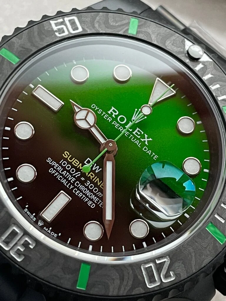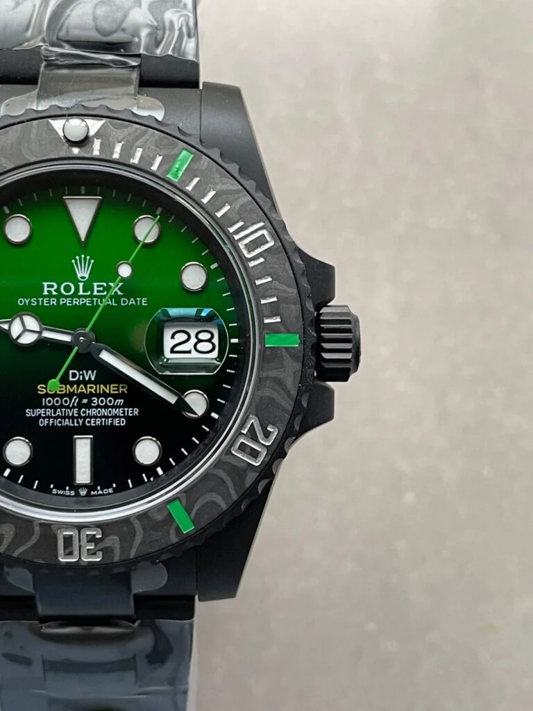 Iconic Styling: This Rolex Submariner DIW “Parakeet” DLC VSF 1:1 Best Edition boasts an impressive blend of DLC coated steel construction with a striking black/green dial. This watch is an authentic representation of Rolex’s unique blend of durability and luxury styling.