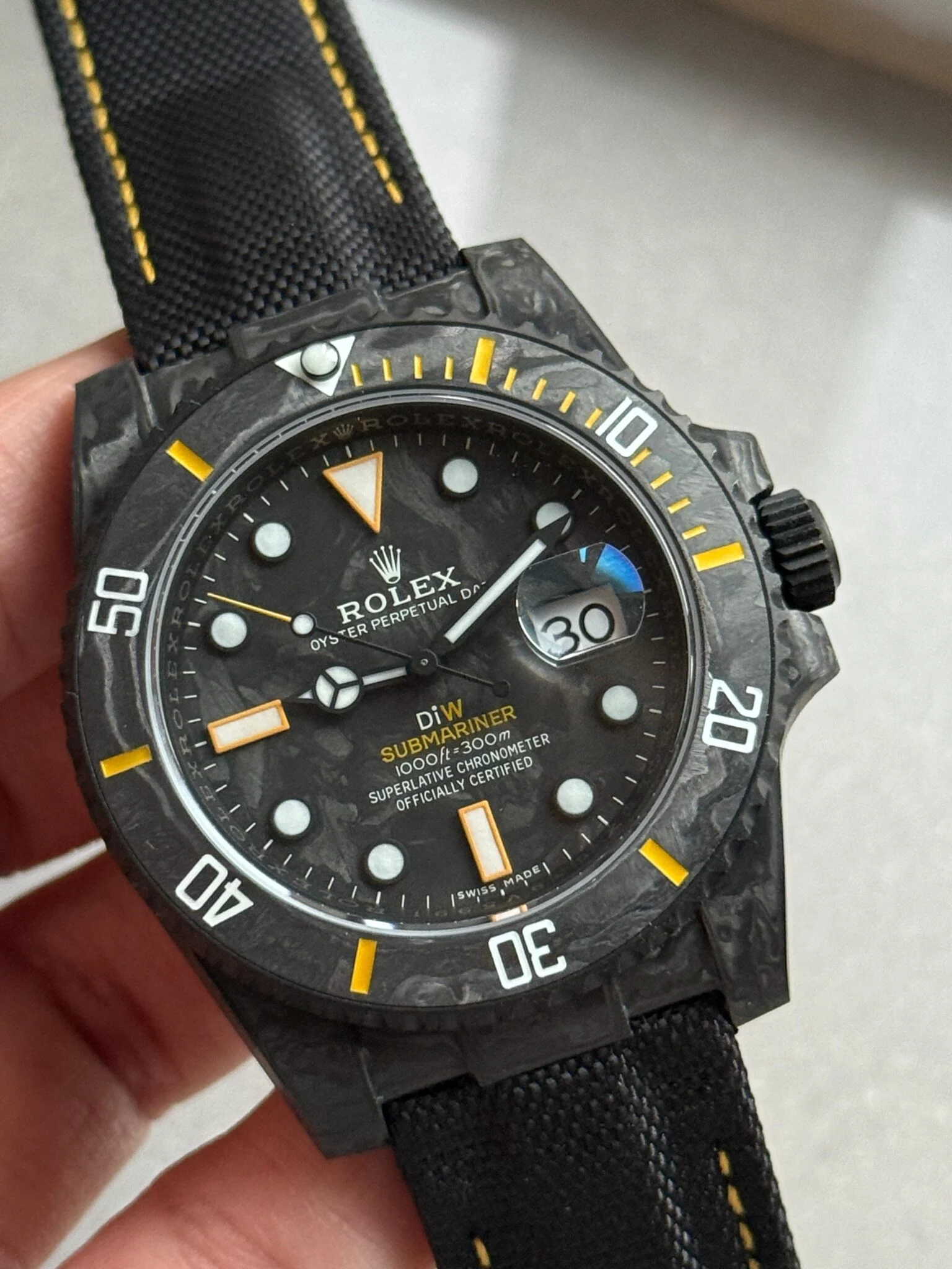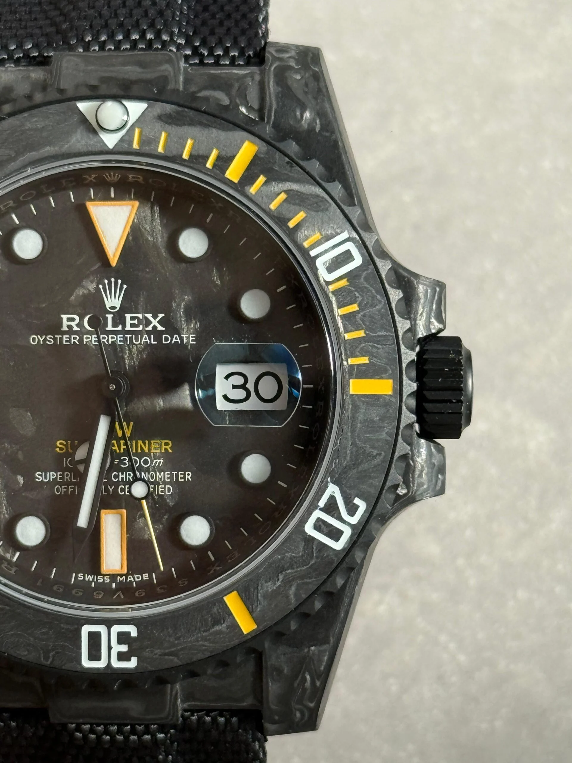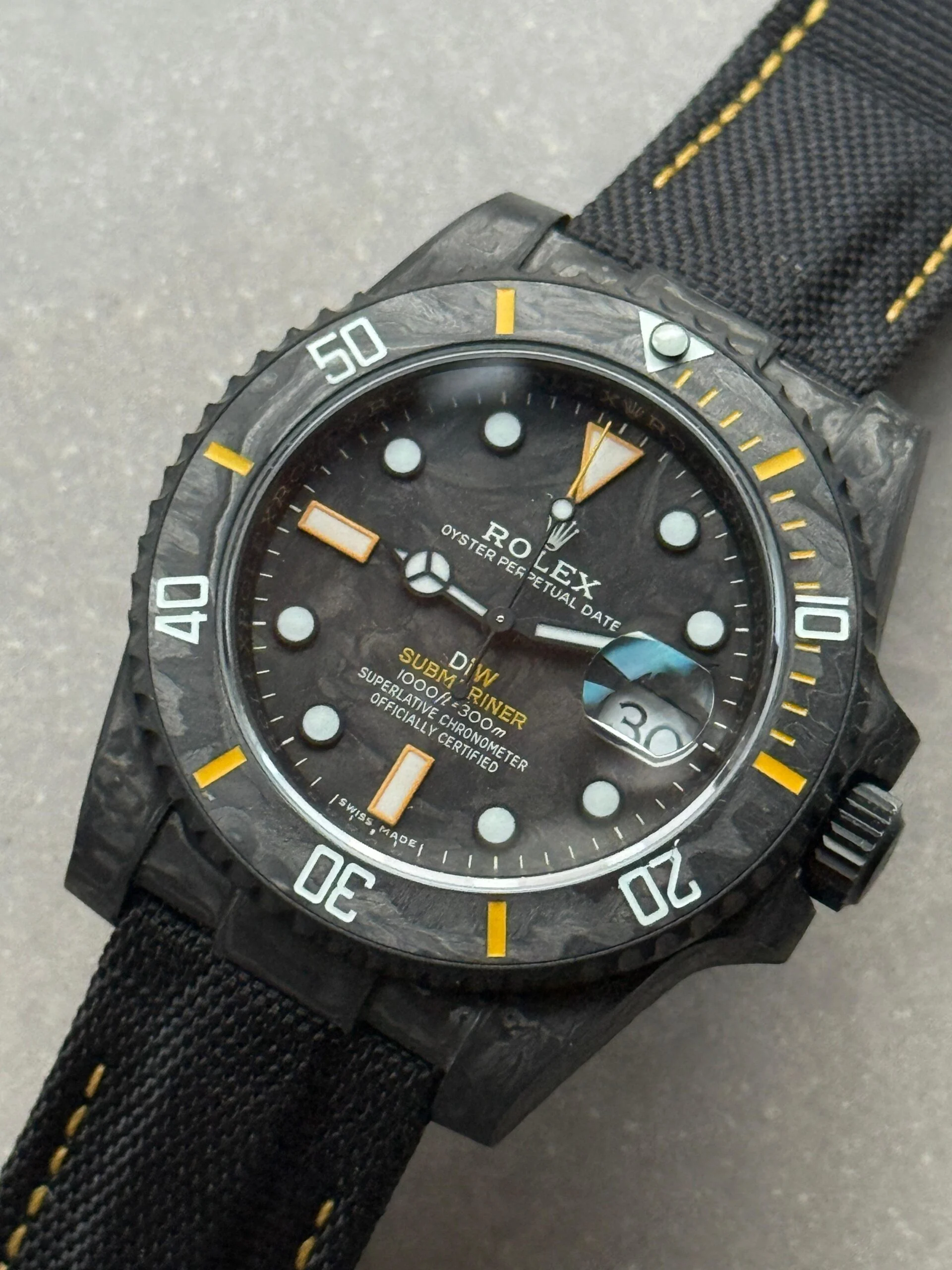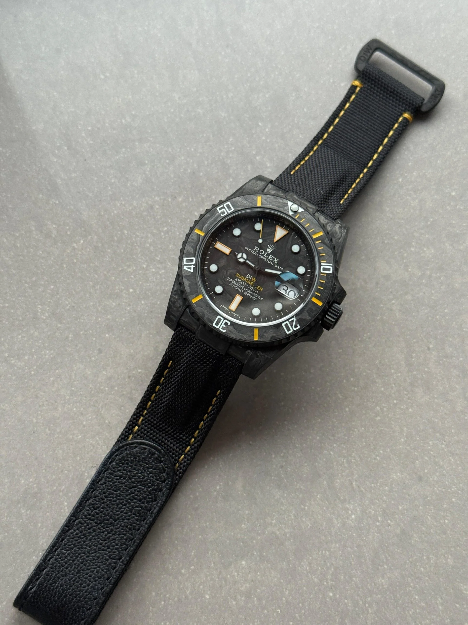 Submariner DIW Carbon VSF 1:1 Best Edition Black/Yellow Dial on Black Nylon Strap Super Clone