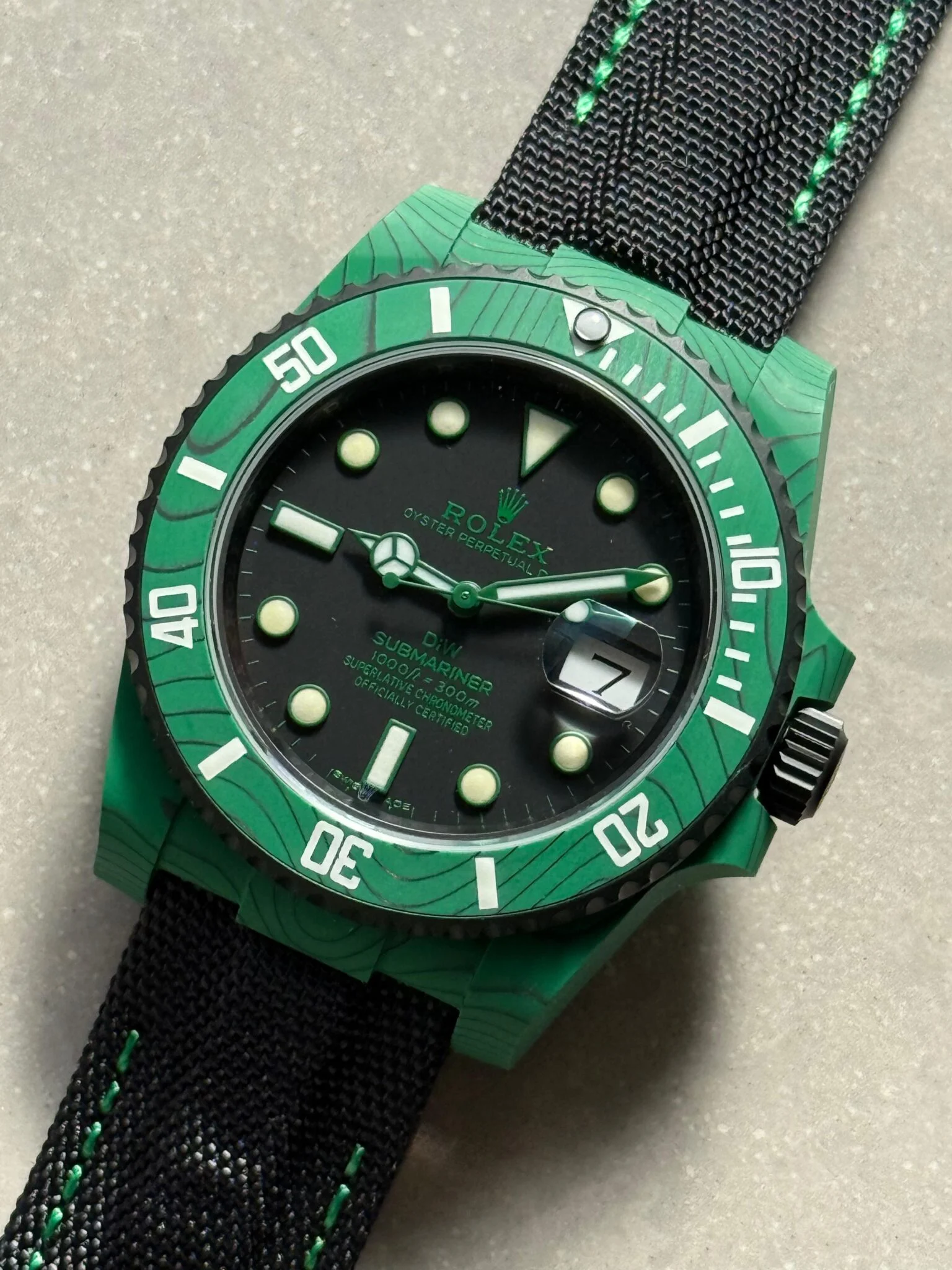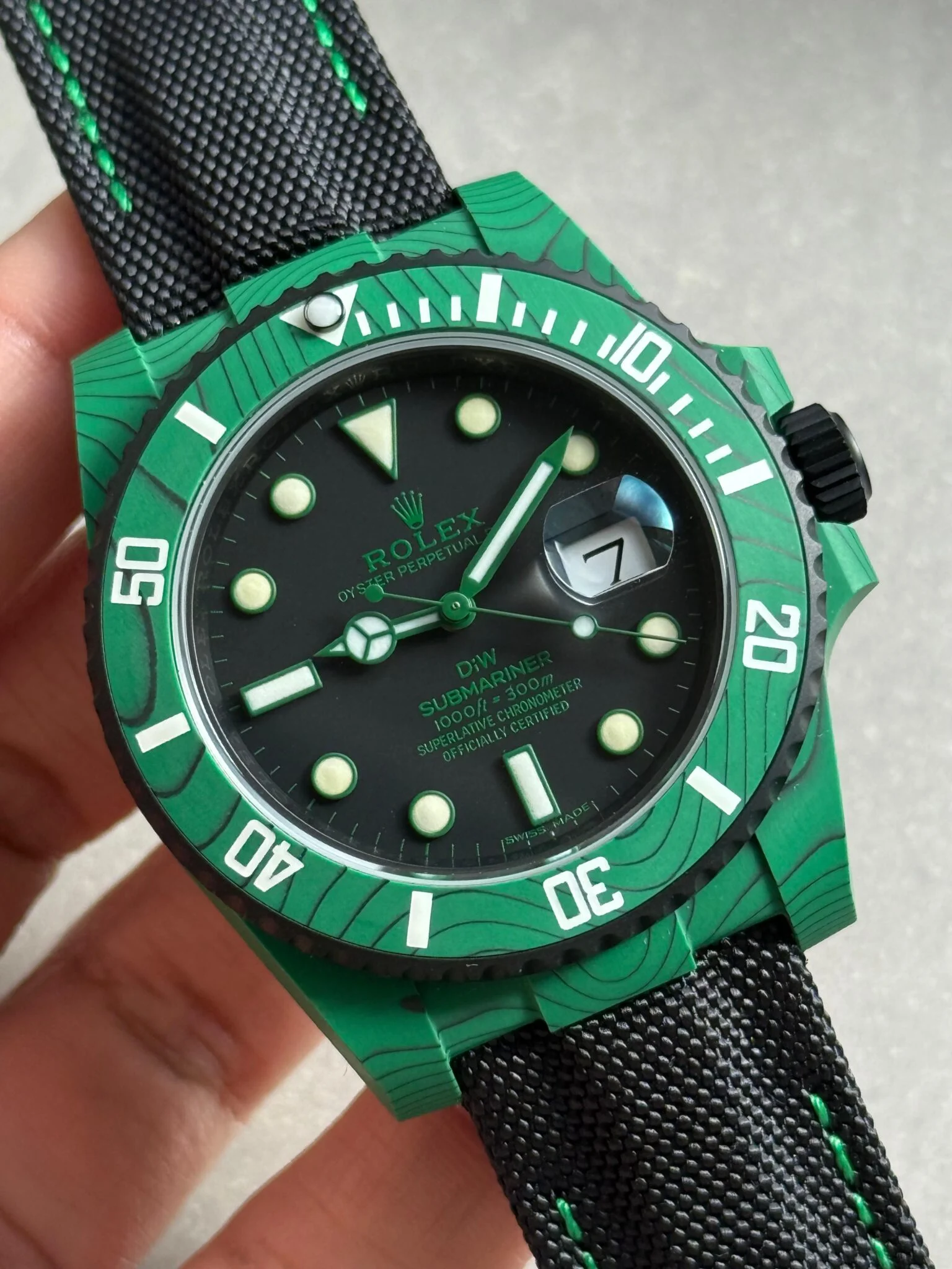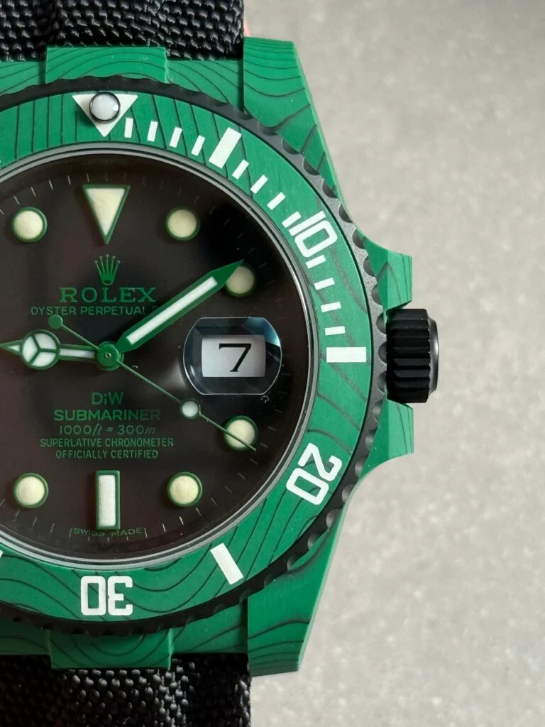 Submariner DIW Green Carbon VSF 1:1 Best Edition Black Dial on Black Nylon Strap VS3135
