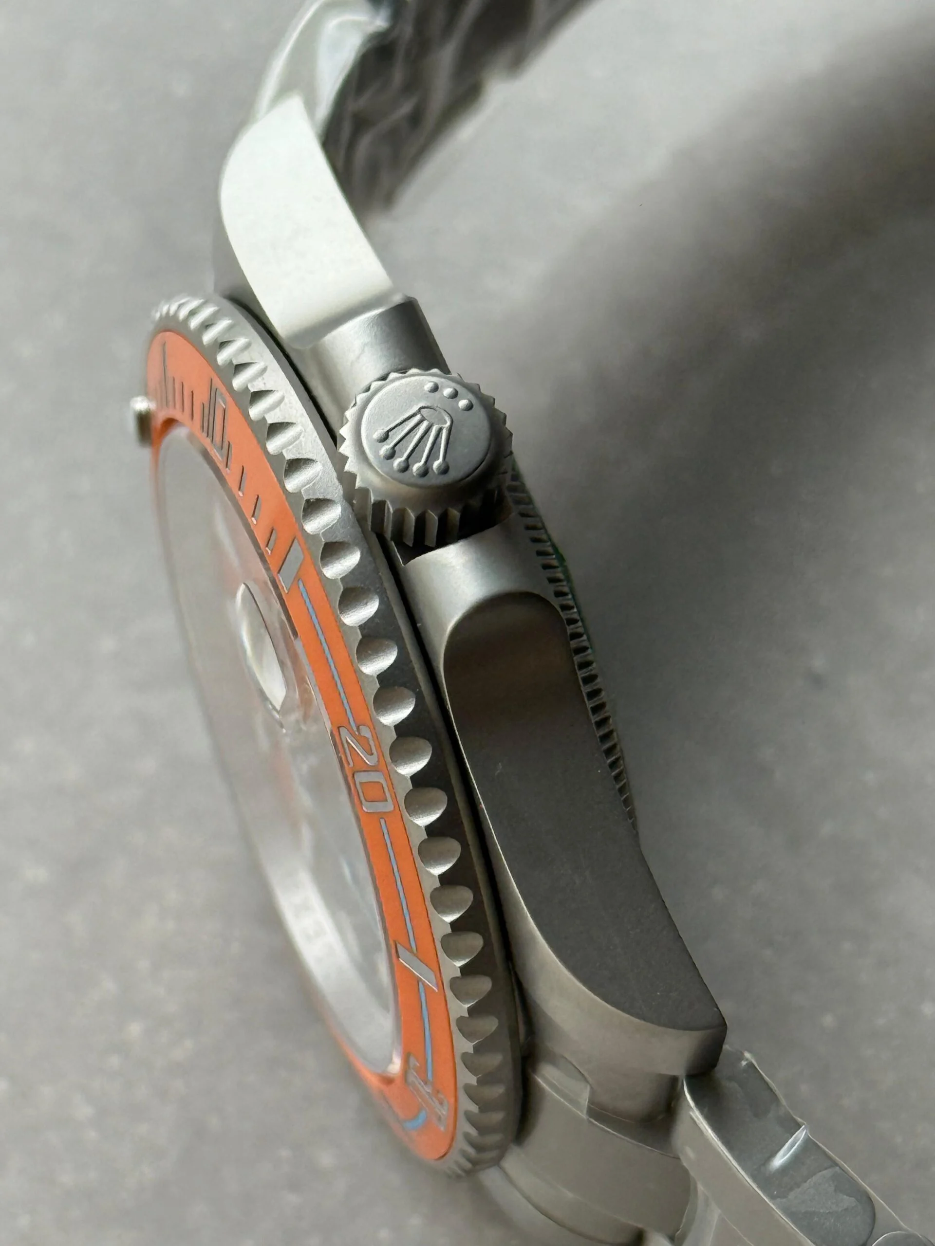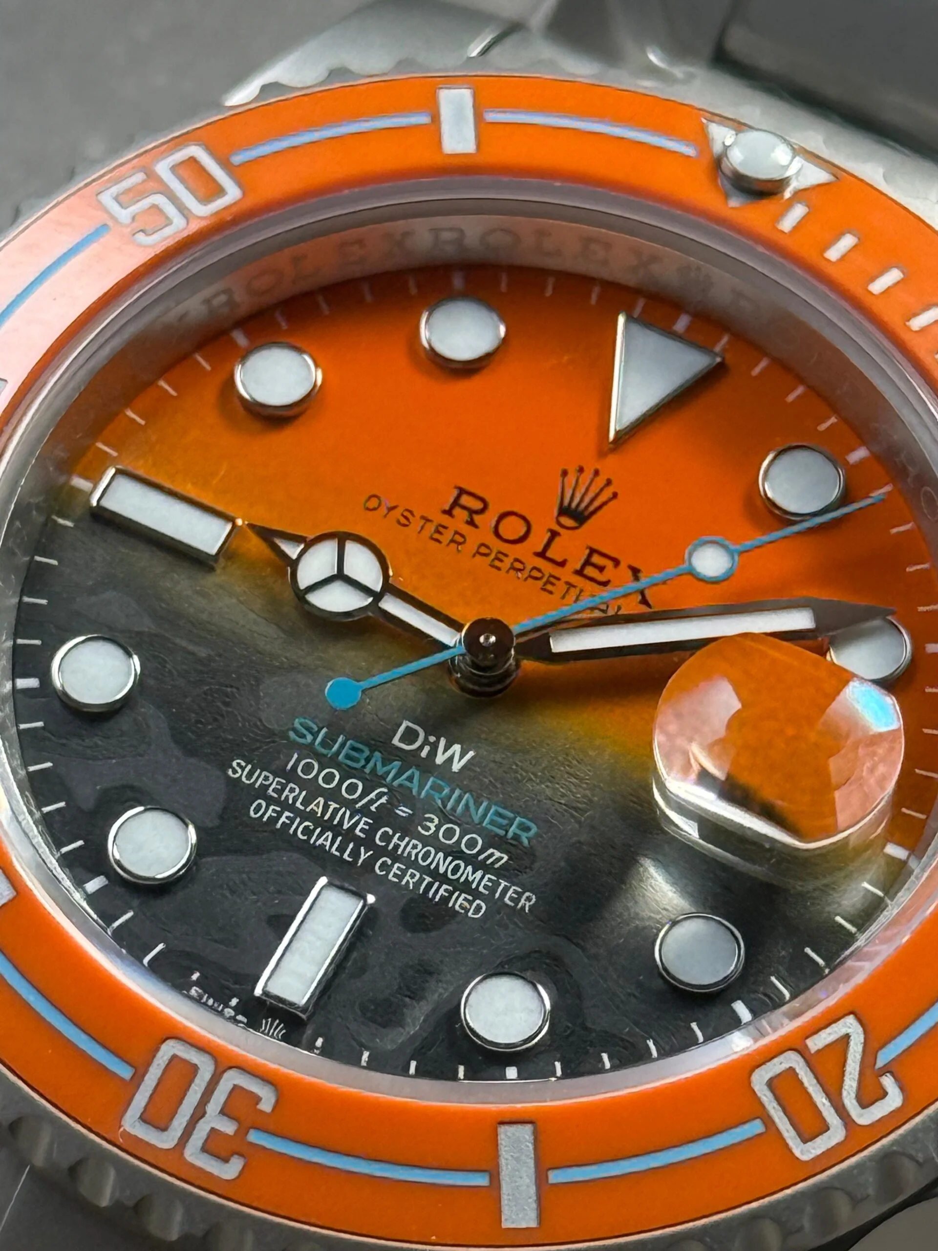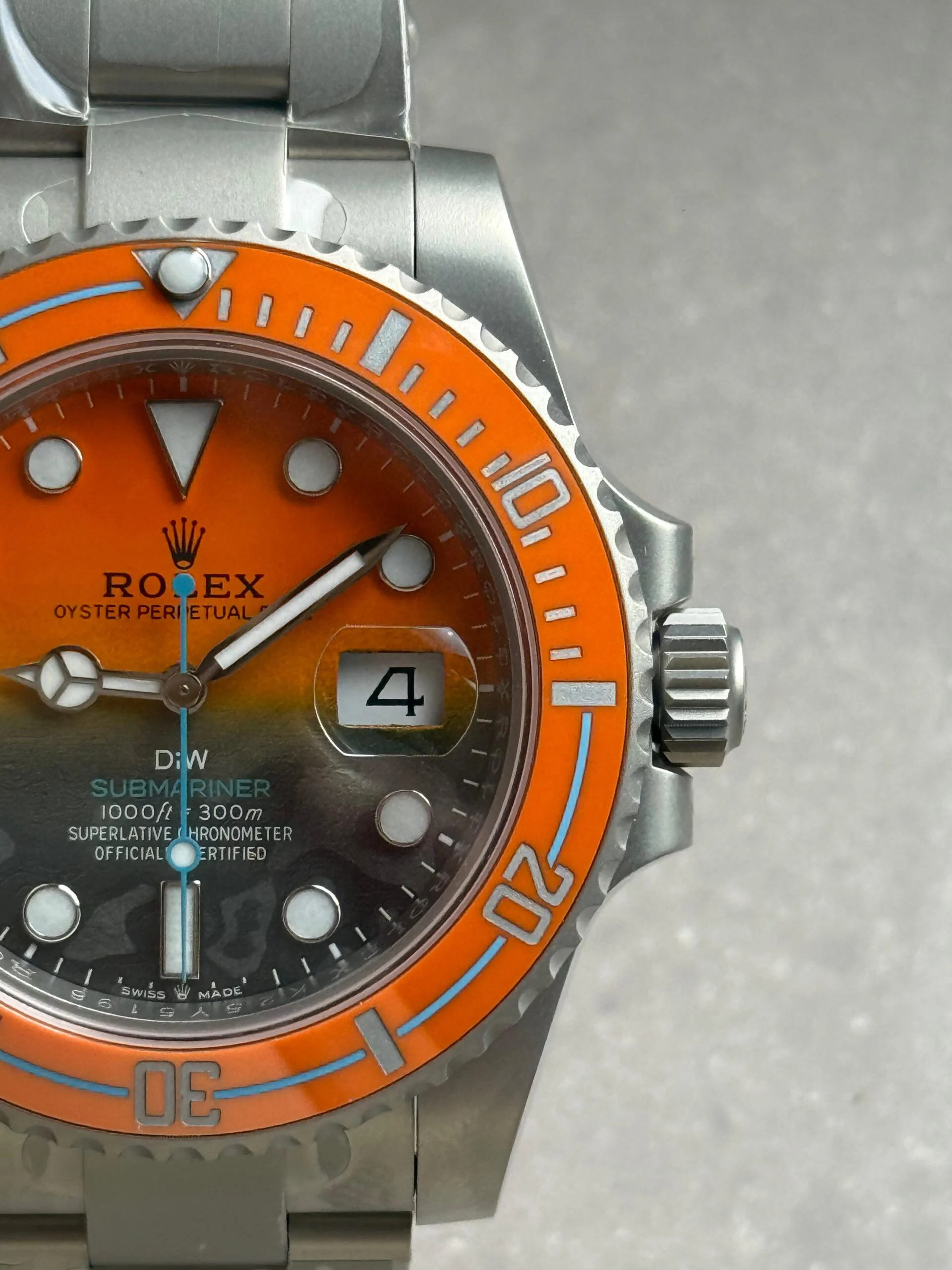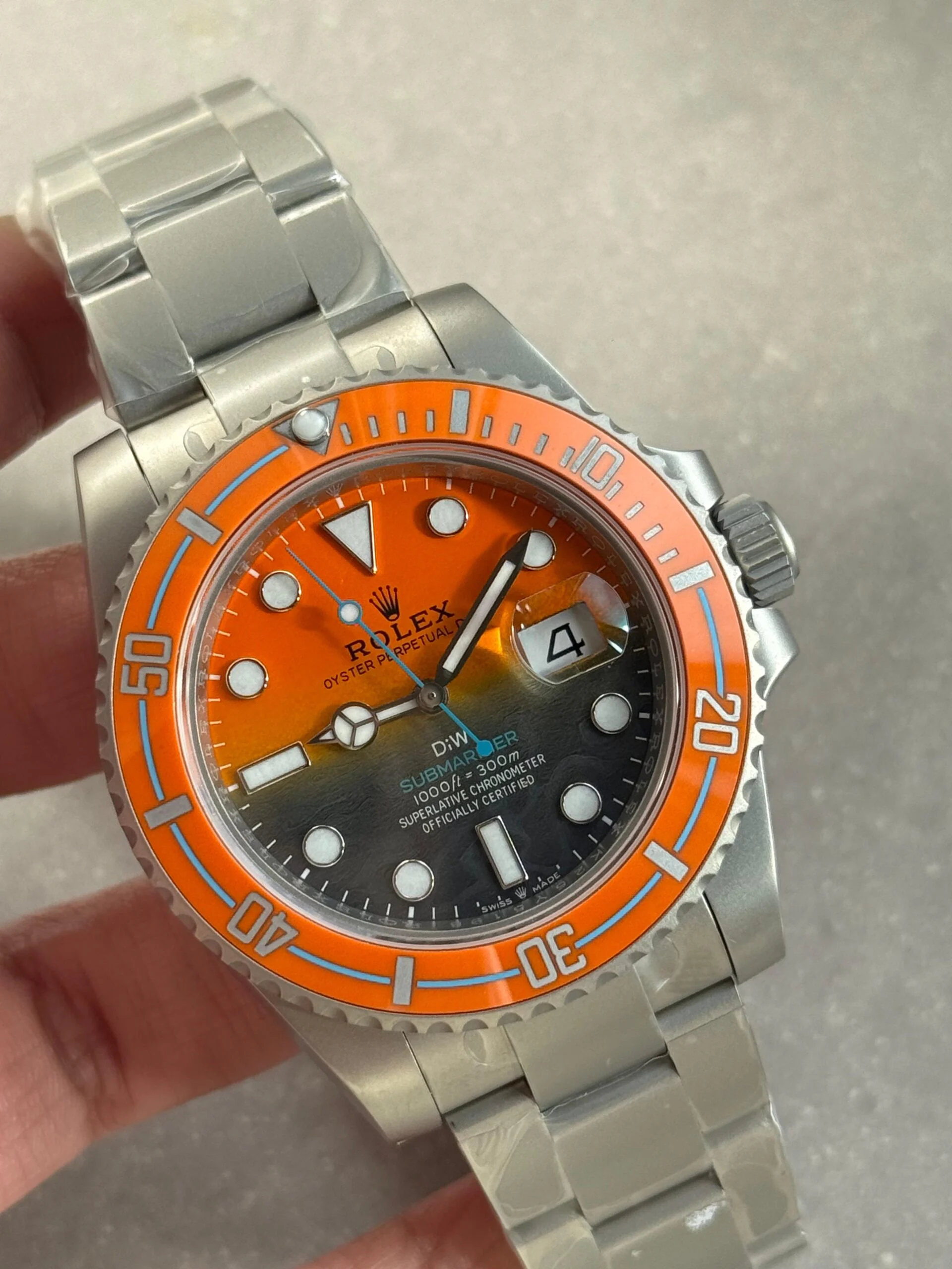 Iconic Styling: A stunning interpretation of the classic Rolex Submariner, this replica stands out with its eye-catching orange grey dial and sandblasted stainless steel case and bracelet. An absolute must-have for any watch enthusiast.